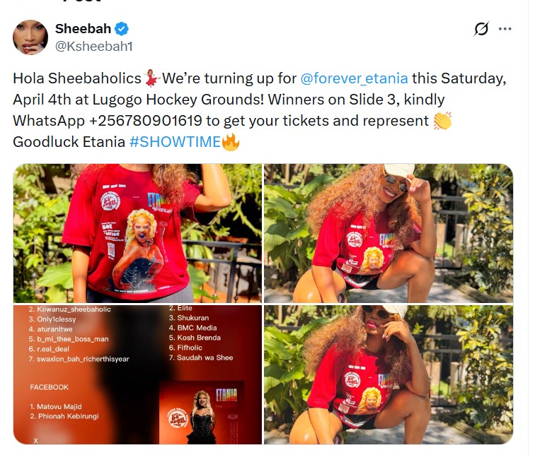 Share Facebook Twitter LinkedIn Pinterest Email Sheebah Karungi Urges Fans to Embrace ‘Becoming Etania Life of the Party ‘ Show Sheebah Karungi Urges Fans to Embrace ‘Becoming Etania Life of the Party ‘ Show Sheebah Karungi Urges Fans to Embrace ‘Becoming Etania Life of the Party ‘ Show